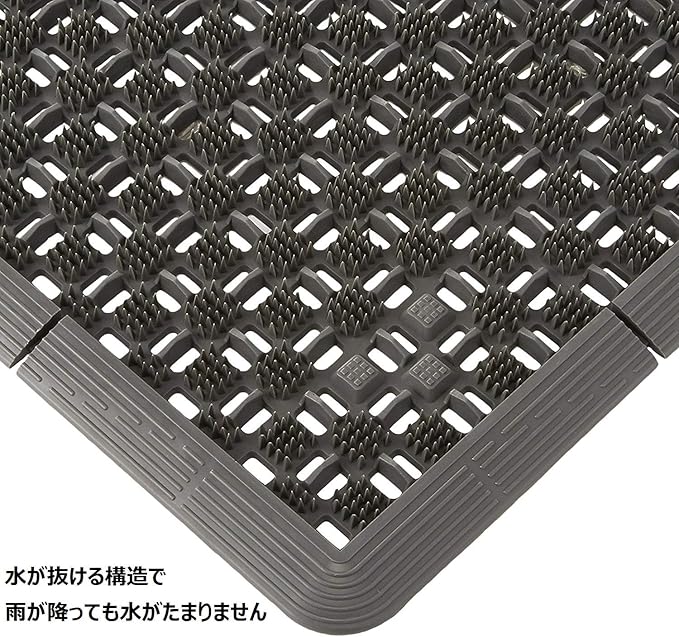 汚れや泥が下に落ちる、穴あき構造となっているため、マットに汚れが溜まりにくく、メンテナンスが簡単です。水で丸洗いすることができます。