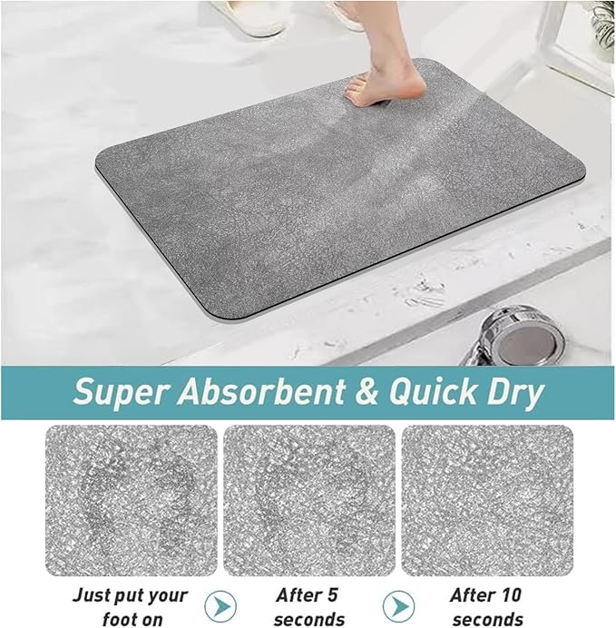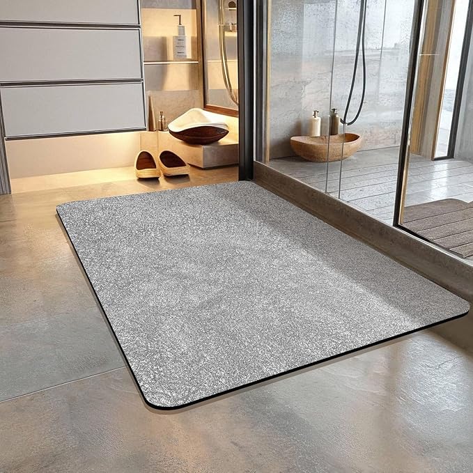 珪藻土 バスマット 足拭き お風呂 珪藻土マット 洗える マット キッチン ソフト 速乾 おしゃれ ノンアスベスト (グレー, 40X60CM)
