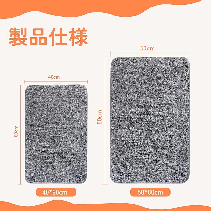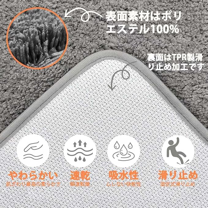 【商品仕様&材質】サイズは約80cm 50cm (購入前に必ず設置場所の寸法をご確認ください)表面素材はポリエステル100%、裏面はTPR製滑り止め加工です