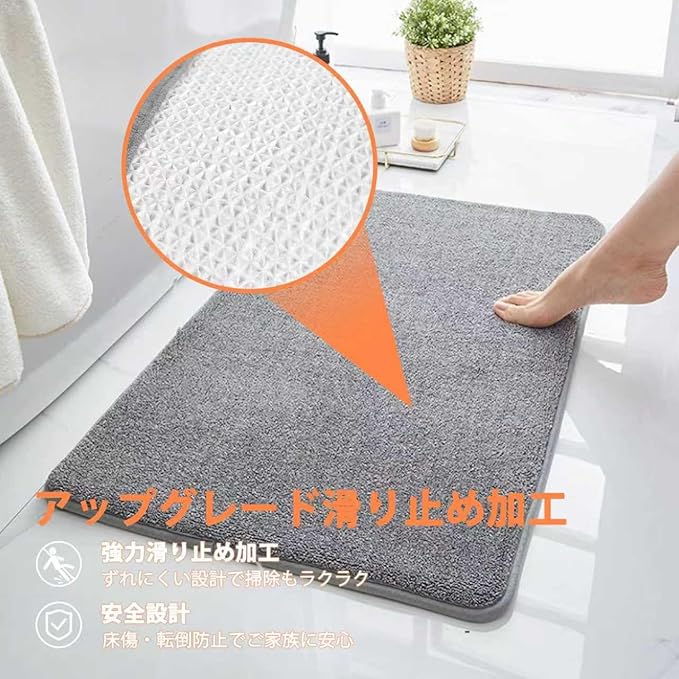 【アップグレード滑り止め加工】 裏面に強化した滑り止め加工を施し、ズレにくい設計で掃除機がけも簡単です。マットのずれによる床キズや転倒事故を防ぎ、高齢者やお子様のいるご家庭にも最適です