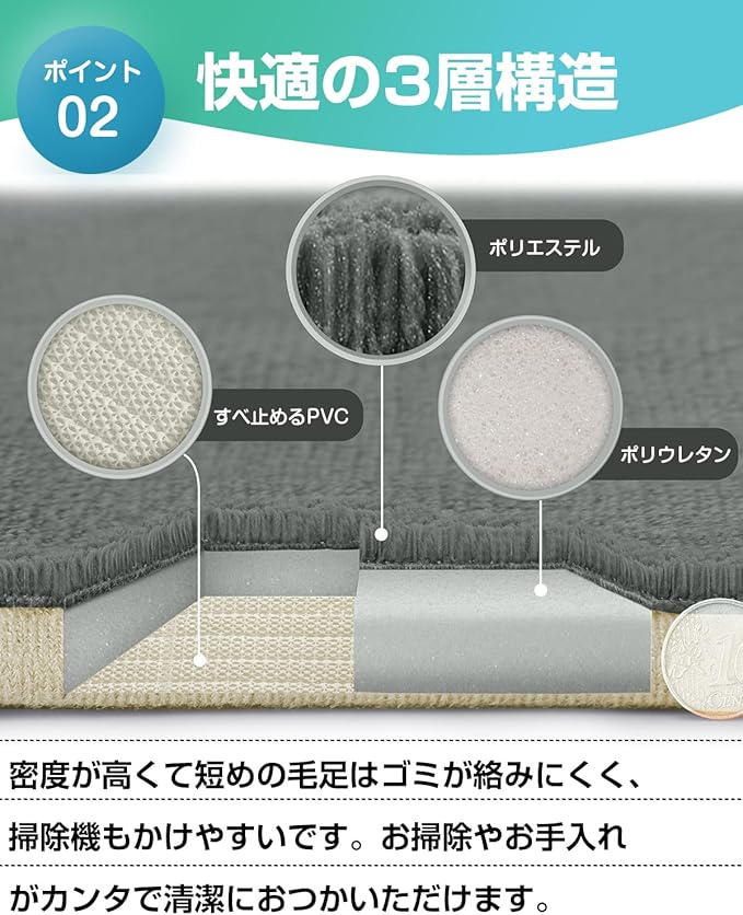 【ふわふわで気持ちいい】中材がポリウレタンを使っていますため、厚さをしっかりと感じられて、ふかふかで素足が気持ちよく、踏み心地が気持ちいいです。しっかりとした丁寜な縫い上げて、毛足が抜けにくく、ボリューム感が持続します。