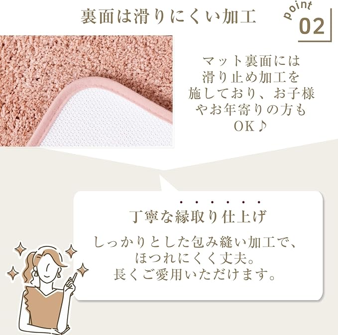 【高吸水・速乾で清潔さをキープ】 水滴を素早く吸収し、床を濡らすことなく使用できます。高い吸水性と速乾性を兼ね備えたトイレマットは、常に快適で衛生的なトイレ環境を保ちたい方に最適です。