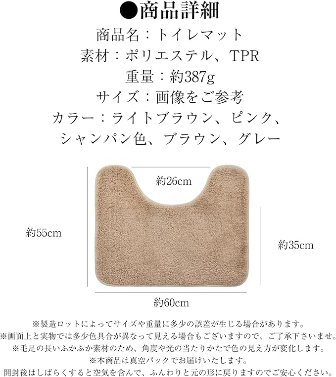 トイレマット 洗える 拭けるタイプ トイレまっと 吸水速乾 滑り止め 無地 おしゃれ トイレ カーペット 省スペース対応 toilet mat トイレマット レギュラーサイズ 55 60cm 複数カラー展開 (ライトブラウン)