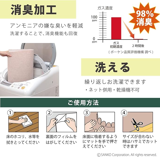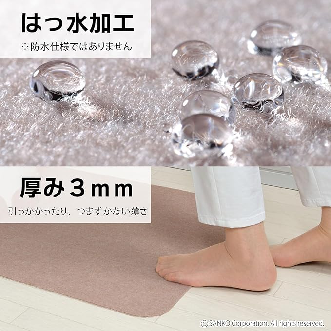 ・薄くて、ズレないマットでつまずかないからお掃除ラクラク ・奥行の長さをお好みで調整できるからどんなお手洗いにもぴったりサイズに合わせられる ・撥水加工済みなので、汚れをふき取りやすい