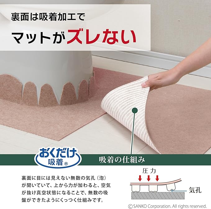 Sanko トイレマット ズレない 洗える 消臭 おくなが 無地 ベージュ おくだけ吸着 KE-97