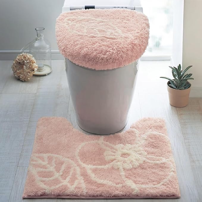 [ベルメゾン] トイレマット ふんわり シャギー トイレファブリック ピンク(フラワー) 標準マット・フタカバーなし