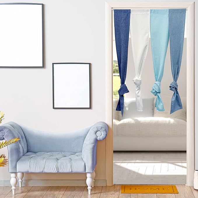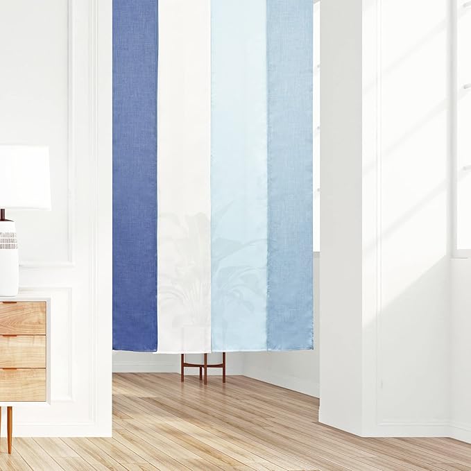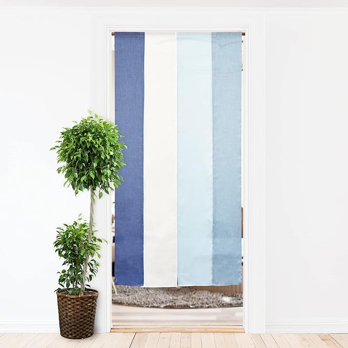 のれん 暖簾 おしゃれ カーテン 間仕切り 仕切りカーテン 目隠し ロング 無地 シンプル 4連 グラデーション 四つ割れ フレンチ ナチュラル ムーラン 巾85cm 丈170cm (ブルー)