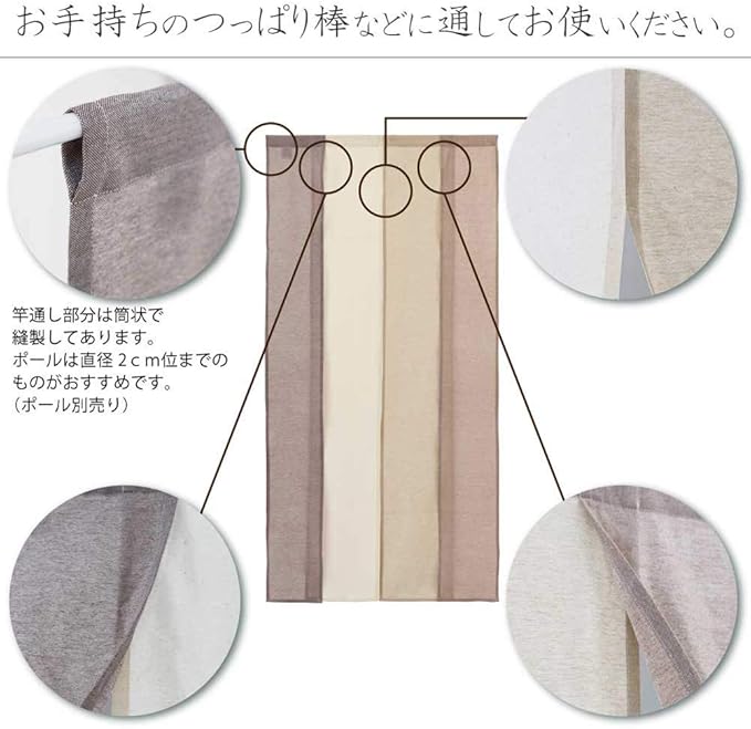【取り付け方】お手持ちのつっぱり棒(ポール直径2cmまで)などに通してご使用ください。※つっぱり棒は別売りとなります。