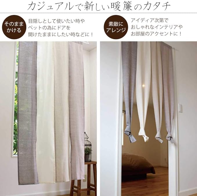 Sunny day fabric のれん セーヌ 幅85cm x 丈170cm ブラウン 4連のれん