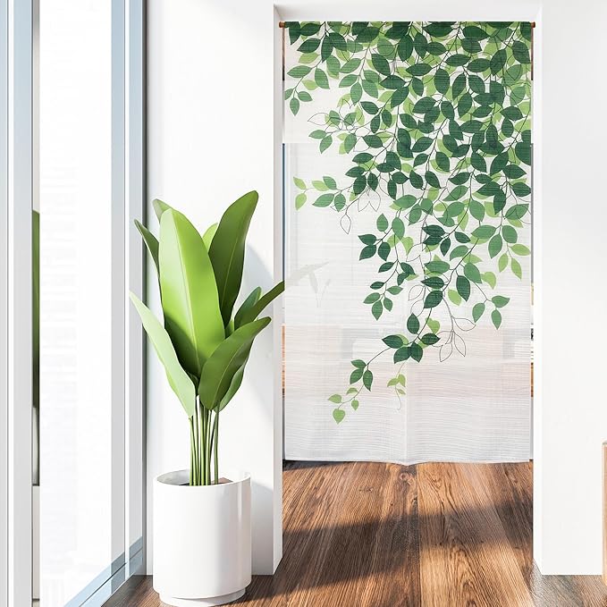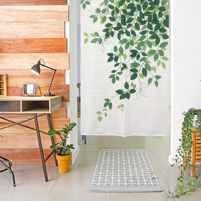 のれん 暖簾 おしゃれ カーテン 間仕切り 仕切りカーテン 目隠し リーフ柄 葉 ナチュラル シンプル カジュアル ボタニカル アイビー ラインリーフ 巾85cm 丈150cm