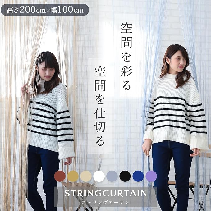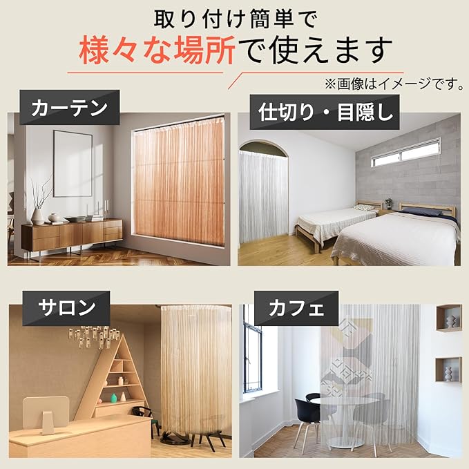 ※目隠しを目的した製品ではござません。間仕切りの透け感の調整は幅を寄せてご使用すると密度が増します。