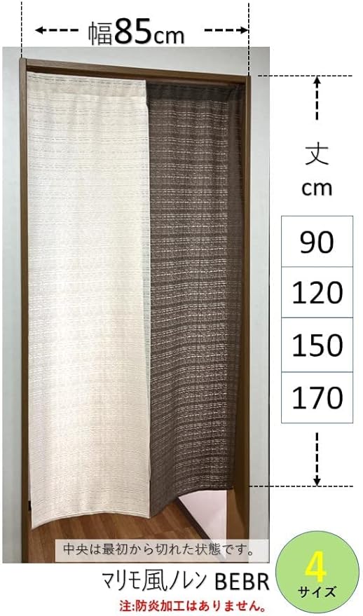 【製品サイズ】マリモ風 和モダンのれん・幅85cm x丈170㎝*中央はカットした状態での納品になります。