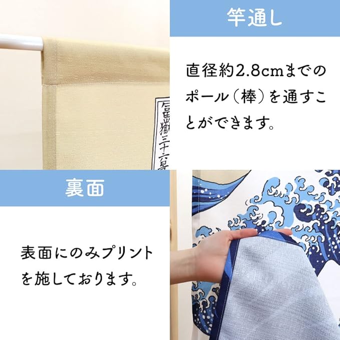 【注意点】※のれん棒、突っ張りポール等は付属しておりません。 ※カラーに関してはモニターの発色により多少異なる場合があります。 ※生地の特性や裁断・縫製作業での若干の歪みなどにより、仕上がりサイズに最大2cm程度の誤差が生じることがあります。