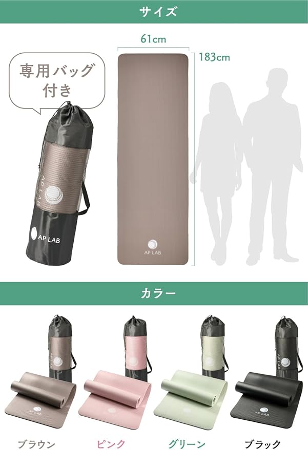 【驚きの10mm極厚 滑りにくい】ヨガマット 厚め [持ち運び袋付き]トレーニングマット 滑り止め 大きめタイプ 筋トレマット ピラティス ホットヨガ ストレッチ 男女兼用 大判 軽量 (ピンク/ブラウン/グリーン/ブラック)