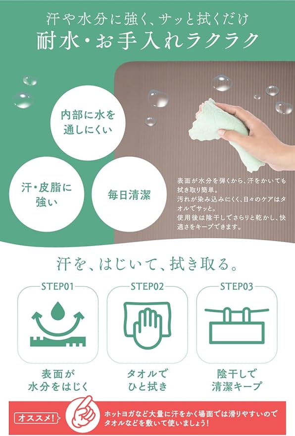 ✅【軽量 高耐久のNBR素材】 耐久性と柔軟性に優れたNBR素材を使用しており、折りたたみや巻き取りにも強く、変形しにくいのが特徴。汗や湿気にも強く、水拭きだけで簡単にお手入れ可能なので、いつでも清潔に保てます。日常的な使いやすさと衛生面を両立した、理想的なフィットネスマットです。