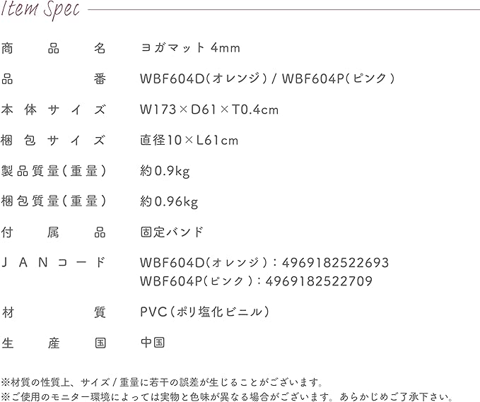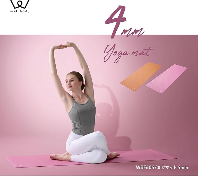 【軽量で扱いやすいヨガマット】軽量で扱いやすい厚みのヨガマットです。豊富なカラー展開で自宅の家具の色に合わせることもできますし、お好みのカラーを選べます。厚みは軽くて持ち運びにも便利な4mmタイプと、身体への衝撃を吸収する6mmタイプの2種類から選べます。
