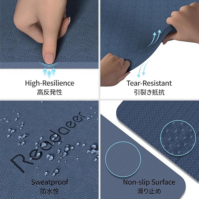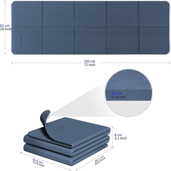 Readaeer ヨガマット トレーニングマット 折り畳み式 183cm 61cm 厚め 6mm TPE素材 無臭 防音 収納バッグ付き 軽量 持ち運び・収納便利 ストレッチマット エクササイズマット フィットネスマット ピラティスマット