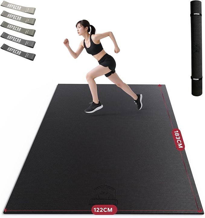 HAPBEAR エクササイズマット 8mm 厚手 大判 ヨガマット 高密度PVC 滑り止め 防音 衝撃吸収 トレーニングマット ホームジム 家族用 おしゃれ カラー