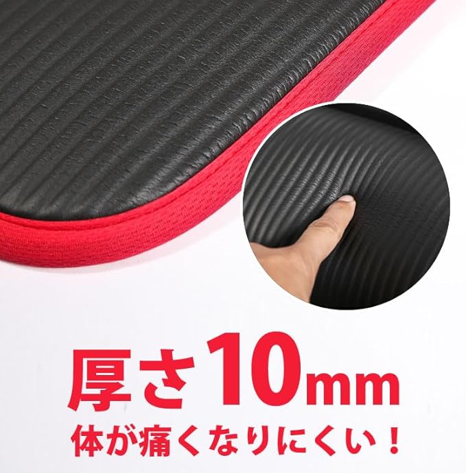 さらに耐久性が一層向上し、引き裂きに強いカラーエッジラッピングが、マットを保護し、長期間の使用にも耐える耐久性を確保します。また、適度な弾性なので、心地良くエクササイズにご利用戴けます。