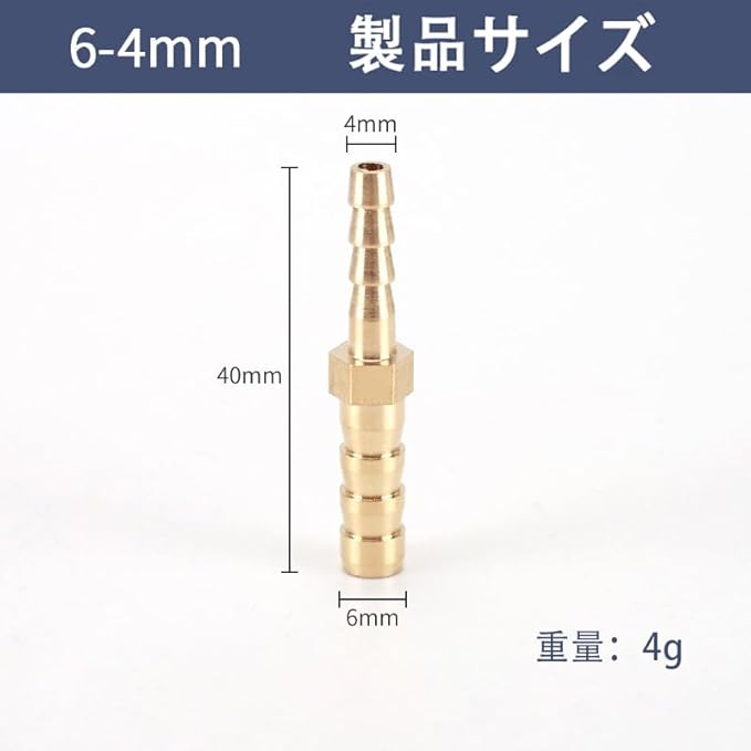 ホース継手 異径 アダプタ 外径6mmx内径4mm ジョイント カプラー アダプター I形 ストレート コネクタ ホース変換ジョイント 連結金具 ホースニップル エルボ継手 黄銅製ネジ込み式 2個セット