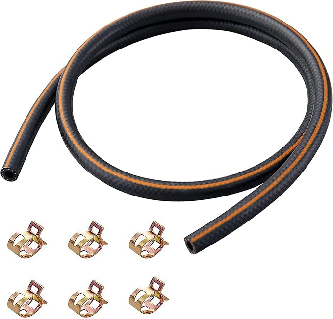DFsucces 燃料ホース ニトリルゴム(NBR)ホース 3層構造 耐油 耐圧 耐熱 耐腐食性 バイク・自動車・芝刈り機用 全長1m 専用ホースクランプ 6個付き (内径8mm 外径14mm)