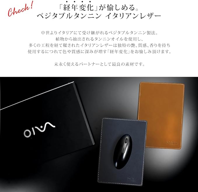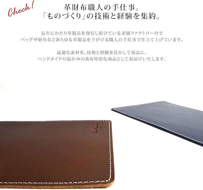 [Dom Teporna] マウスパッド 本革 イタリアンレザー 職人仕上げ ビジネス 光学式 IR LED式 BlueLED式 レザー式 マウス 全対応 ネイビー