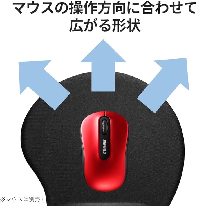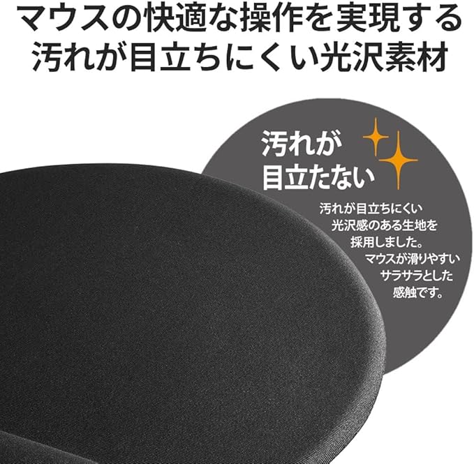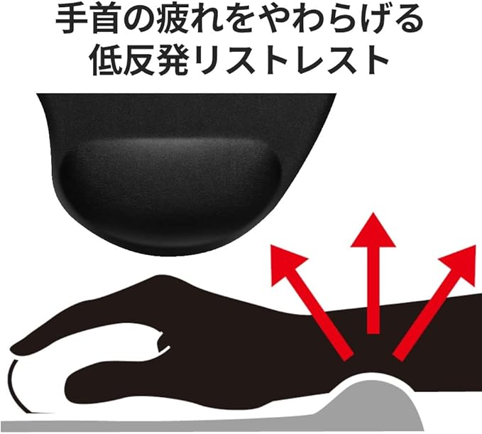 ●低反発素材のリストレストが手首の疲れをやわらげます。●汚れが目立ちにくく、さらさらとしてマウスの滑りがよい光沢感のある生地を採用。●マウス操作面に向かって広くなる形状の為、マウスが落ちがしにくい。●マウスパッド裏面には机にピタッと固定される素材を採用。●BlueLED式/レーザー式/光学式/ボール式マウスなど多様なマウスに対応。