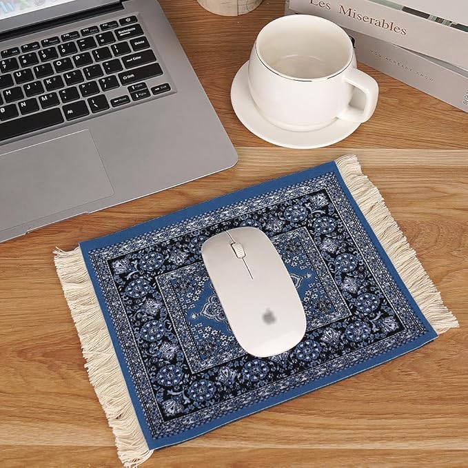 オリエンタルペルシャスタイル マウスパッド、フリンジ付き 多機能 デスクアクセサリー 、ビジネスマン、ゲーマー、学生向け (青)
