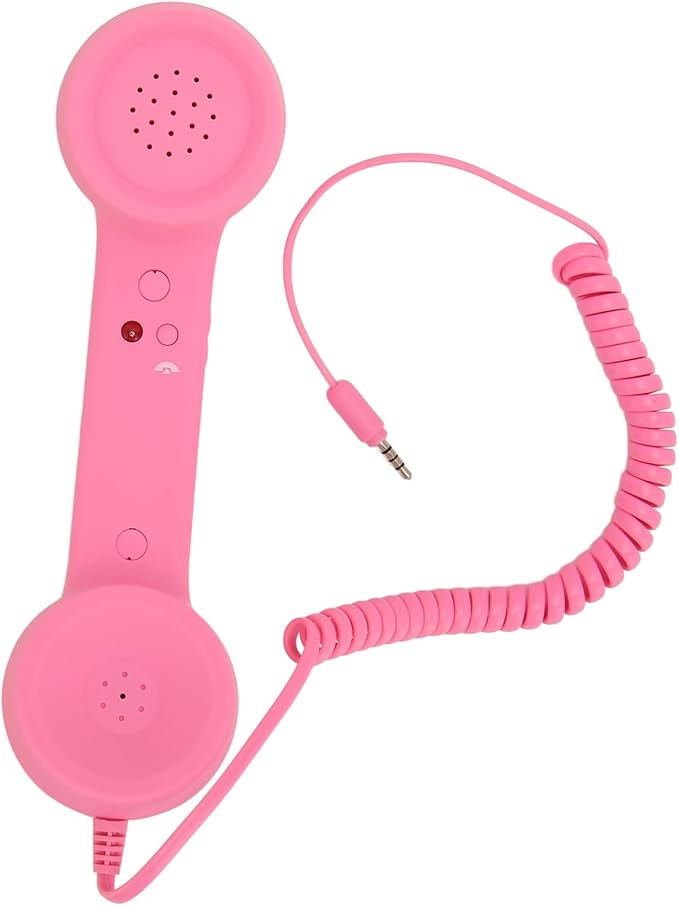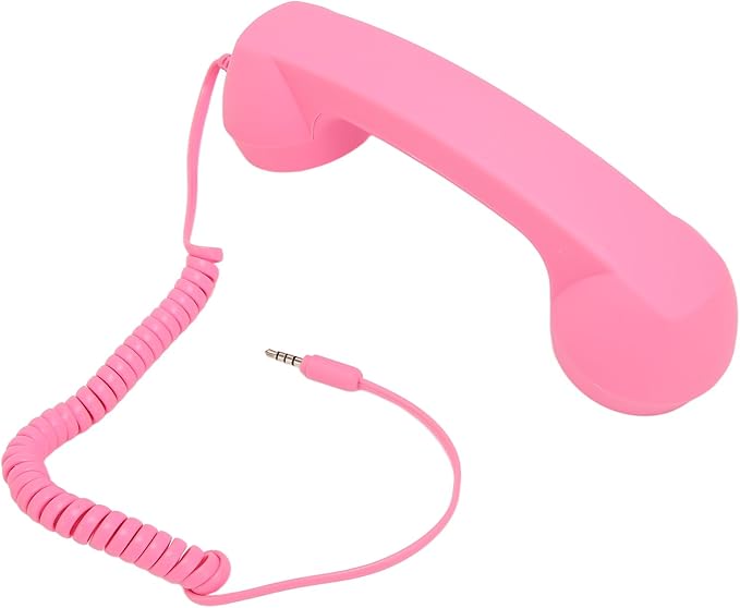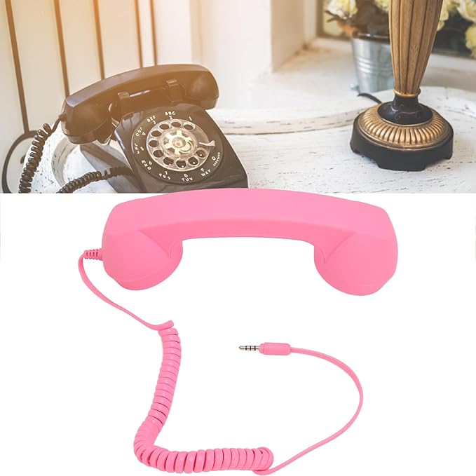 スマートフォン用 受話器 ハンドセット レトロ 3.5mmプラグ スマートフォン/パソコンに接続 調整可能な音量 (ピンク)