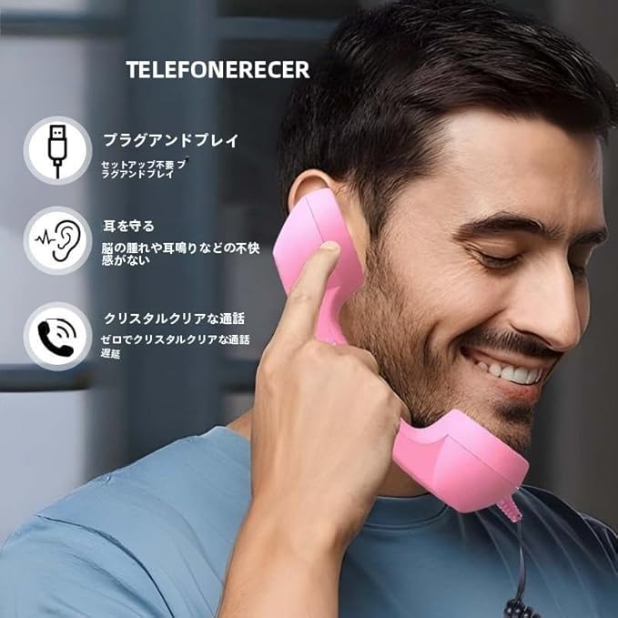 スマホやパソコンで使える懐かしの黒電話 耳にかけやすくながら電話も楽しめる!!