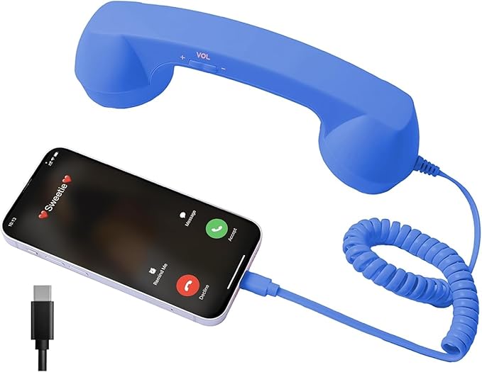 Parishop スマホ 受話器 iPhone iPad 用 携帯電話用ヘッドセットコンピューター 首に挟める アイフォン アンドロイド レトロ 電話機 Type-C対応 プラグ 対応 有線電話 反放射線機能 便利 (ブルー)