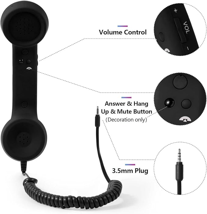 【簡単操作】Bluetoothではなく、ペアリングも不要です。シンプルなプラグアンドフォン接続です。お使いの電話で自動的にハンドセットが使用されます!あなたの電話をレトロにしましょう!