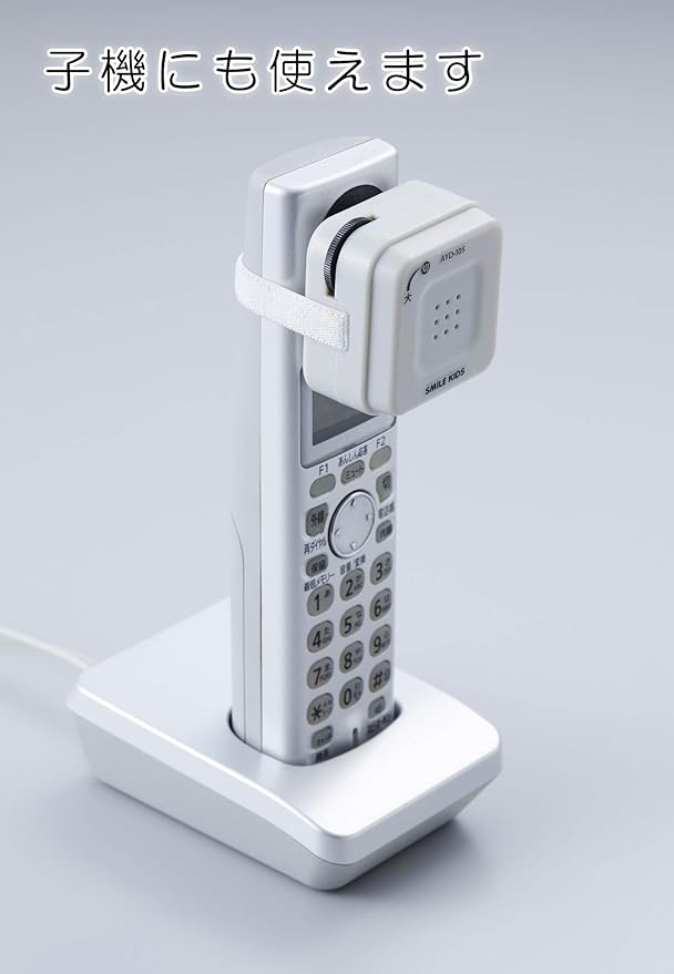 ゴムバンドで取付簡単。受話音量は最大30倍。置けば自動でオフ、持ち上げれば自動でオンの簡単操作。子機にもスマホにも対応