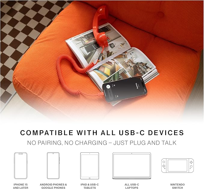 Native Union Pop Phone – マイク&スピーカー内蔵レトロ電話受話器 – USB-C対応(iPhone/iPad/ノートPC/タブレット/Samsung S25/Flip 7/Fold 7)– ハイブリッドワーク・在宅勤務・通話・ビデオ会議・オンラインミーティング用高品質な会話を再発見