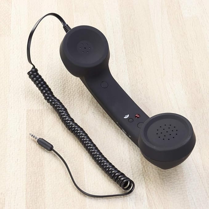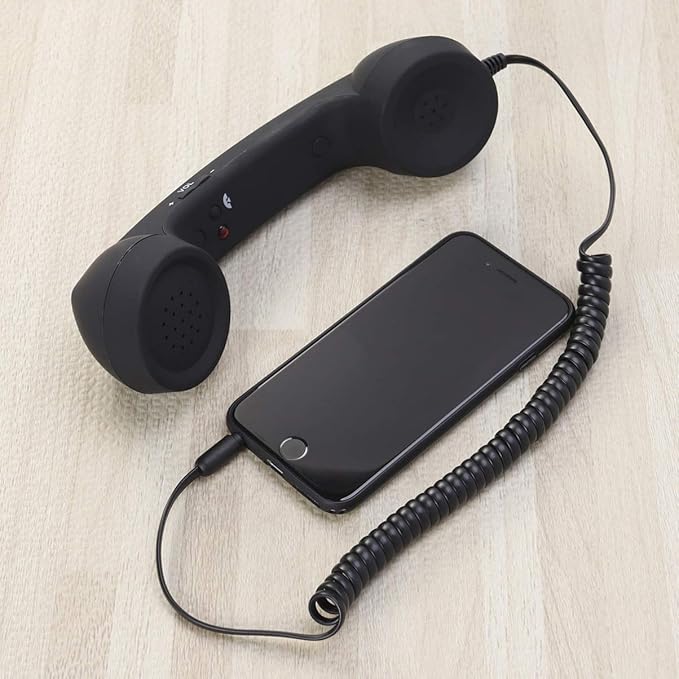 ibasenice レトロ電話受話器 3.5Mm対応 耐放射線 携帯電話用調整可能トーン 軽量ブラック ソフトタッチデザイン ユニバーサル受信機