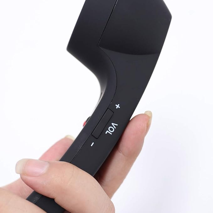 快適なソフトタッチデザイン:軽量で滑らかなゴムコーティングを施した受話器は手に馴染みやすく、長時間の使用でも疲れにくい仕様です。レトロなブラックカラーが特徴です。