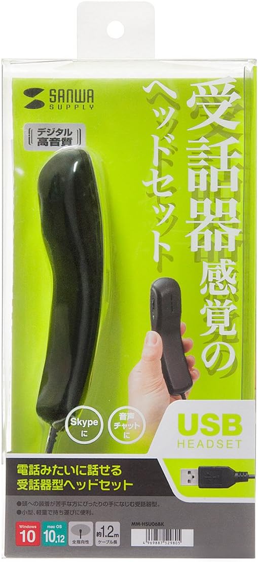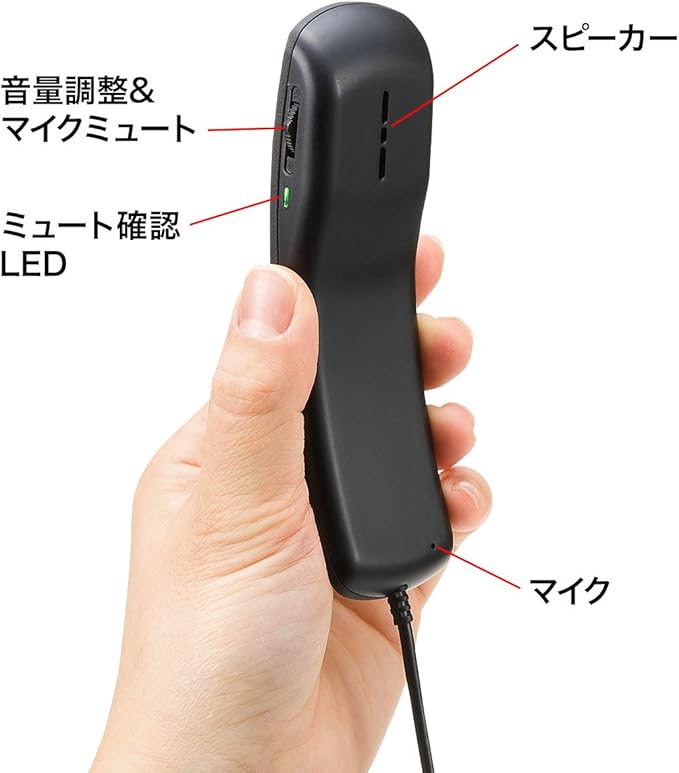 サッと使えて便利な受話器型のUSBハンドセット。ブラック。