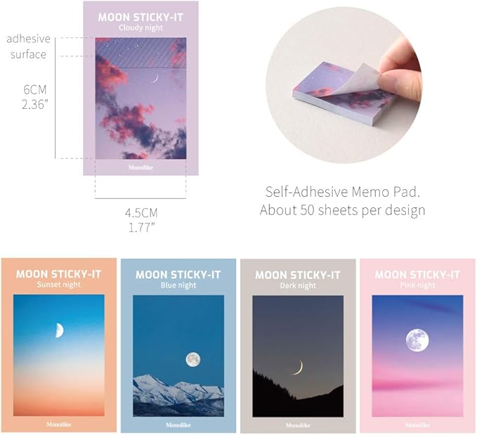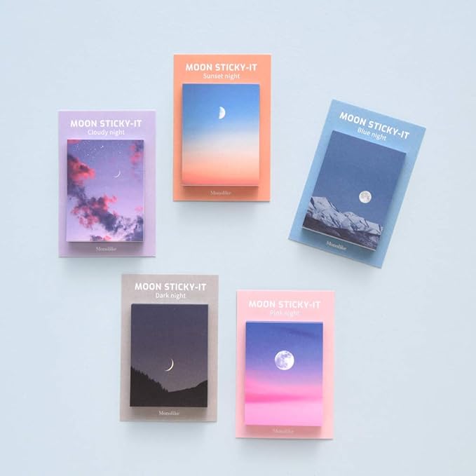 モノライク 月 スティッキー Moon sticky-it - 5セット粘着メモ用紙 50シートお互い違うデザイン5種セット