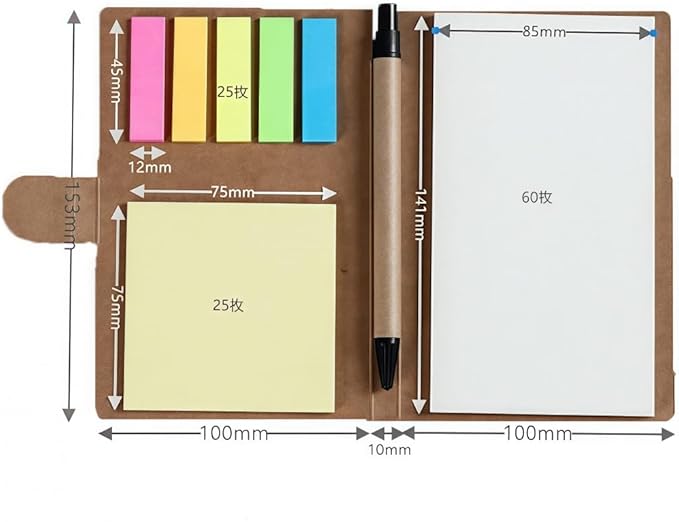 【高品質】表面は優れた素材で作られ、高品質で上品な風を明らかに示しています。中には紙の質がよくて、強粘着で、貼りやすいです。水性粘着剤を採用し、無毒で繰り返し使用可能です。書くときに字がはっきりしていて浸透しにくいです。