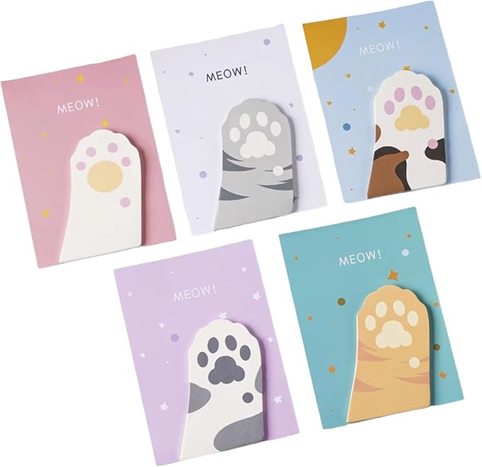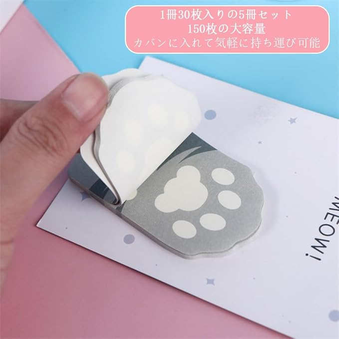 猫 肉球 付箋 メモ 5種類セット 可愛い猫 メモ用紙 文房具 強粘着 学習 オフィス 仕事 勉強 ギフト しおり付き 5冊合計150枚 猫 パンチ 情報シール 貼るタイプ 文房具 インデックス しおり ホーム 多彩