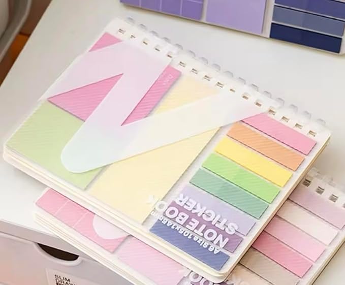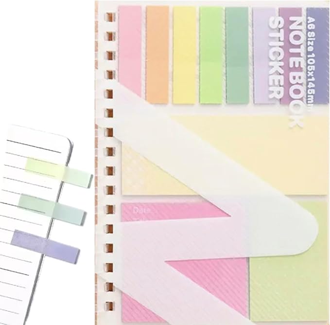E&K726 ノートと付箋がセットになった! 付箋付きA6ノート ふせん各20枚 全8種 合計160枚 メモ帳 可愛い 罫線入り メモ帳 カラフルな文房具 インデックス デイリープランナー リマインダー チェックリスト 学校 学習用 職場用 ToDoリスト (レインボー)