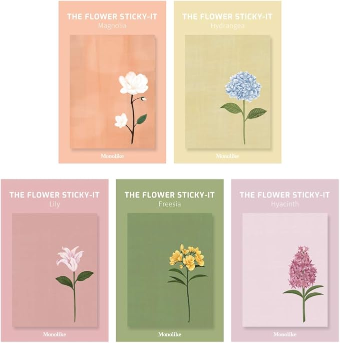 モノライクザフラワー5セットThe flower Sticky-it - 5セット粘着メモ用紙 50シートお互い違うデザイン5種セット