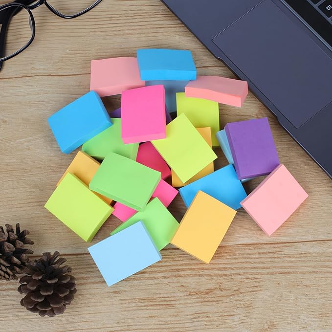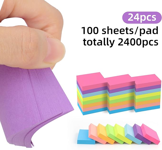 Azureal 小さな付箋 1.5x2インチ 24P ミニ付箋 100枚/パッド 8色の明るい色付箋 Sサイズ オフィス 自宅 学校 会議用