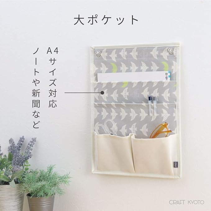 A4サイズ対応で約W26 H36cmのコンパクトなウォールポケット。使いやすい場所に掛けて身近な小物を収納できます。