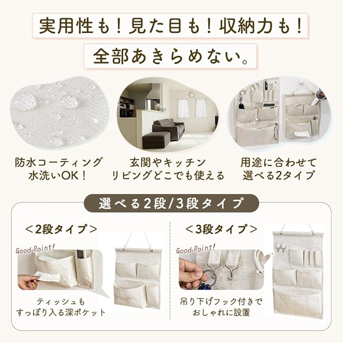 ✅【見た目スッキリ&選べる2タイプ】ティッシュ収納付きの「2段タイプ」と、フック付きで小物整理に便利な「3段タイプ」。用途や設置場所に合わせて選べるので、玄関・リビング・キッチン・デスク周りと幅広く活躍します。