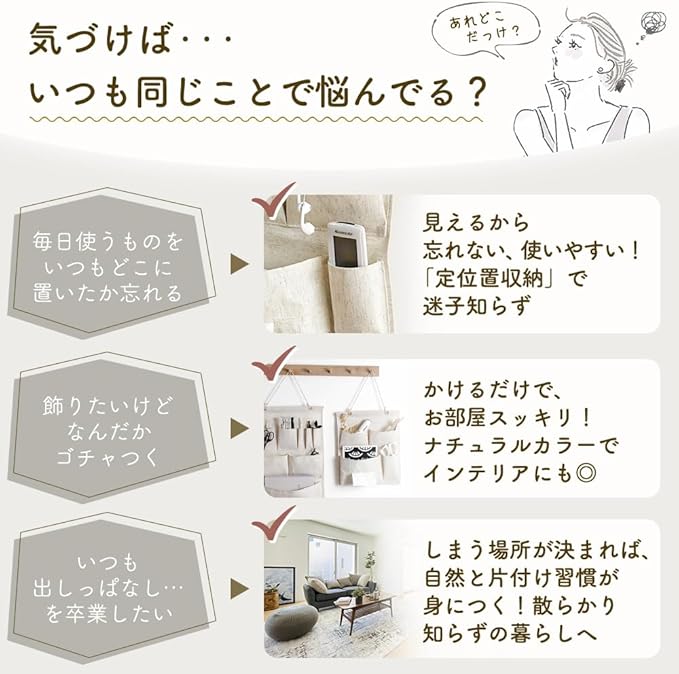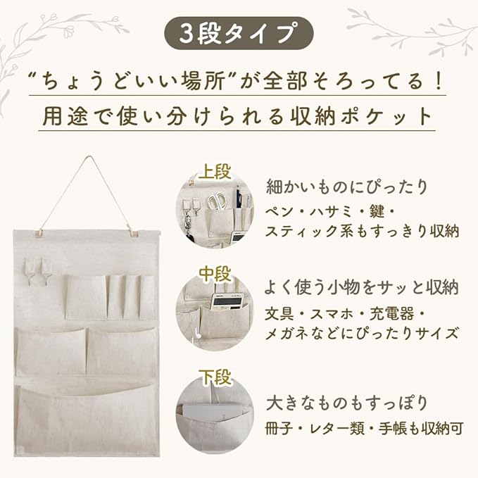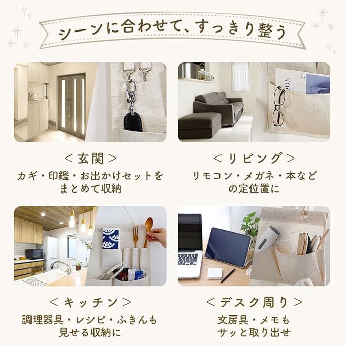 ✅【毎日使いやすい実用設計】深型ポケットやマチ付きポケットで、スマホ・文具・カギ・調理器具までしっかり収納。定位置収納で「どこに置いたっけ?」を解消し、散らかり知らずの暮らしをサポートします。