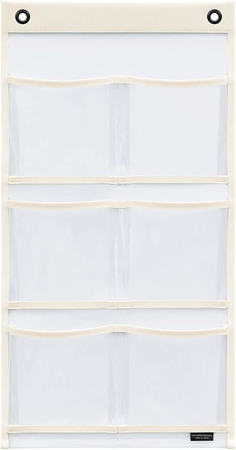 サキ(Saki) ウォールポケット オフホワイト 本体サイズ:約幅30 高さ57.5cm マチ付ポストカード 6P (日本製) W-474