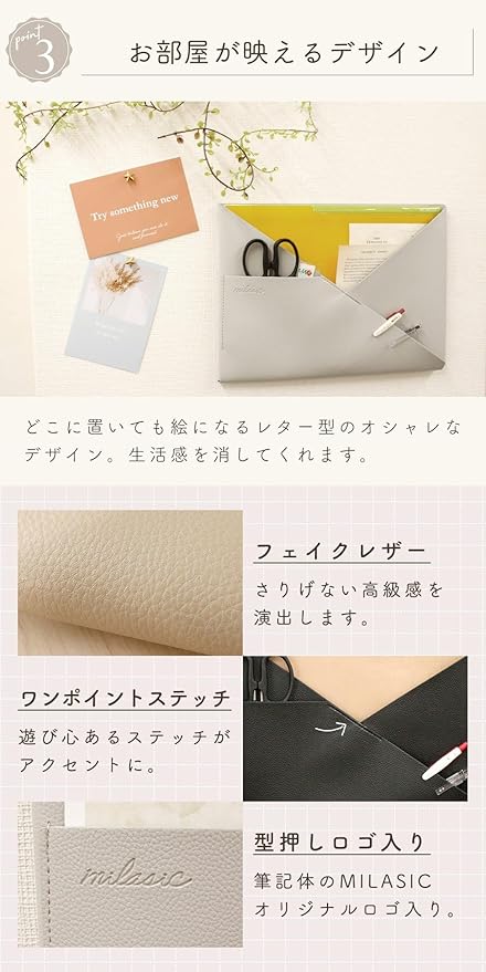✅【取り出しやすいレター型デザイン】開口部が広く中身が見やすいレター形状を採用し、奥までしっかり入っても斜めカットでサッと取り出せる構造。学校のお便りや重要書類を入れても探しやすく、必要なものをワンアクションで取り出せるのが特徴。はがきポケット・カードポケット・マルチポケットなど細かい分類に対応しているので、文房具・リモコン・メモ帳・請求書・レシート管理など日常のこまごました物の置き場所としても◎。忙しい家庭の“ちょい置き散らかり問題”を一気に解消し、机やカウンターの上のスペースを有効活用できる構造】