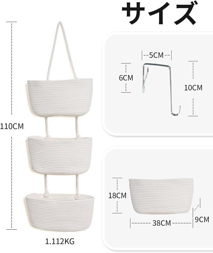 【おしゃれ&実用的】シンプルでスタイリッシュなデザインで、吊り下げカゴや壁面収納としても違和感なし。ホワイトカラーは清潔感があり、北欧インテリアやナチュラルな部屋にもマッチ。初期不良時は24時間対応します。