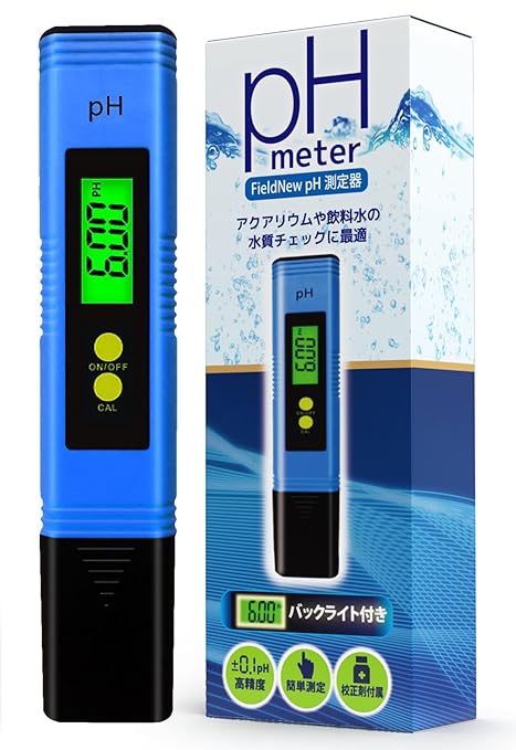 FieldNew【マイベスト選出】ph測定器 国内検品済 保証書付き バックライト付き 高精度 動画解説 簡単操作マニュアル 校正剤付き 水槽管理 アクアリウム (校正剤1セット)